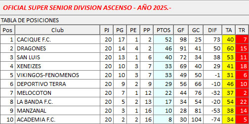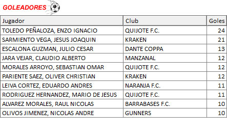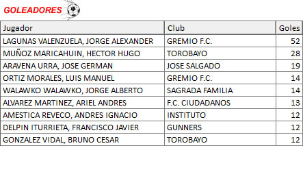 Tabla Posiciones Senior-Honor Goleadores Senior-Honor